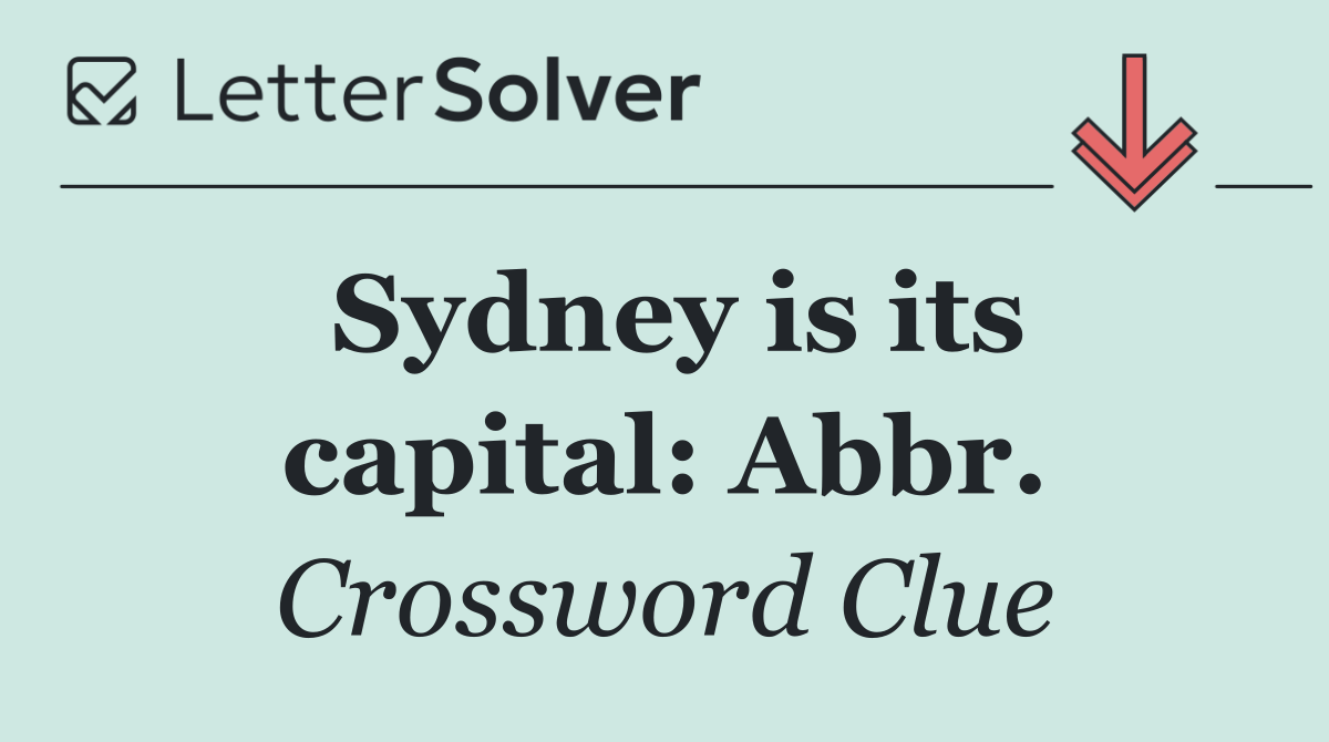 We specialize in solving many of your favorite puzzles, including the New York Times, USA Today, LA Times, Daily Themed Crosswords, and more. The "Sydney is its capital: Abbr." clue from the Premier Sunday puzzle, June 01 edition, is one such example.