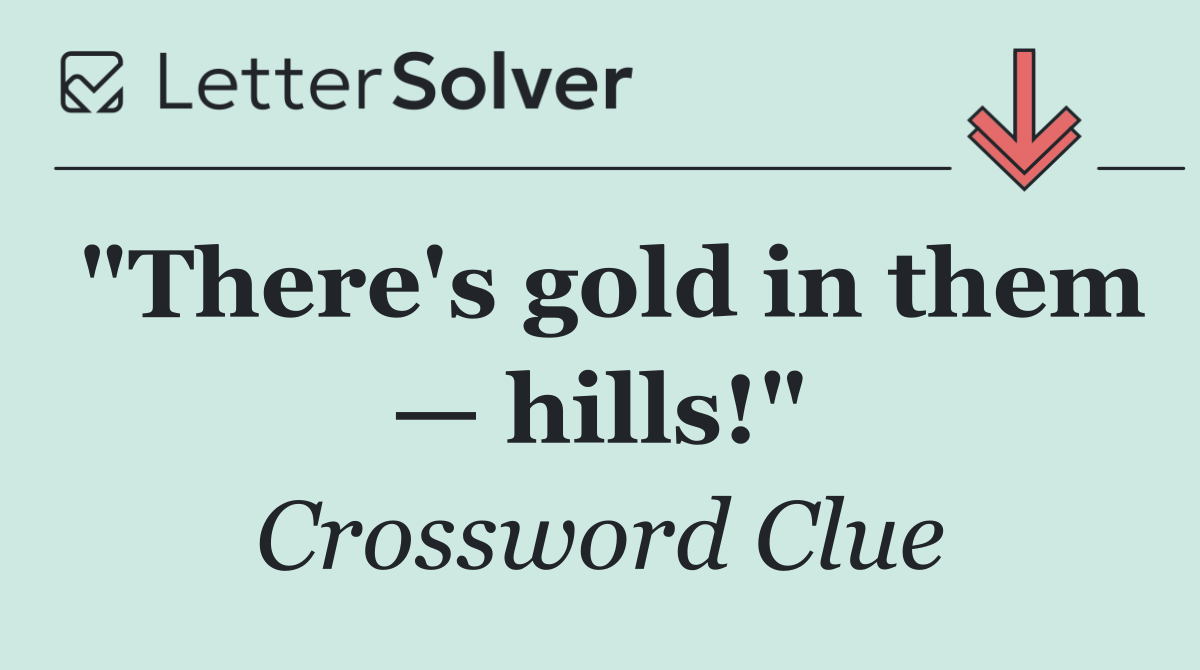 We specialize in solving many of your favorite puzzles, including the New York Times, USA Today, LA Times, Daily Themed Crosswords, and more. The ""There's gold in them — hills!"" clue from the Premier Sunday puzzle, July 02 edition, is one such example.
