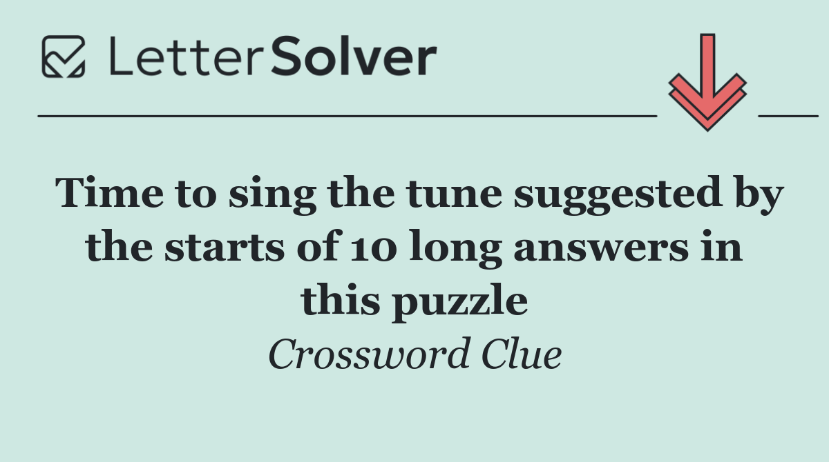 We specialize in solving many of your favorite puzzles, including the New York Times, USA Today, LA Times, Daily Themed Crosswords, and more. The "Time to sing the tune suggested by the starts of 10 long answers in this puzzle" clue from the Premier Sunday puzzle, December 31 edition, is one such example.