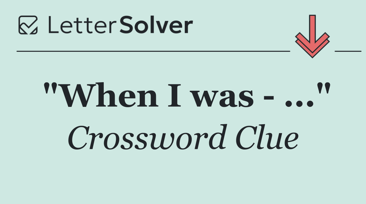 We specialize in solving many of your favorite puzzles, including the New York Times, USA Today, LA Times, Daily Themed Crosswords, and more. The ""When I was ..."" clue from the Premier Sunday puzzle, July 14 edition, is one such example.