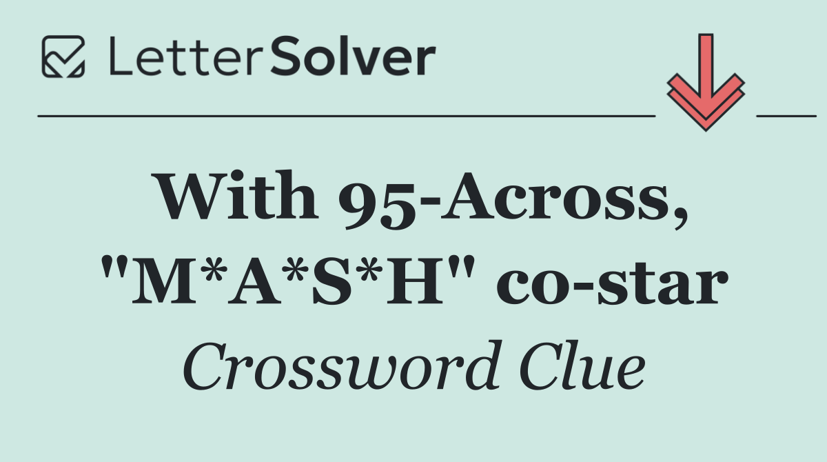 We specialize in solving many of your favorite puzzles, including the New York Times, USA Today, LA Times, Daily Themed Crosswords, and more. The "With 95 Across, "M*A*S*H" co star" clue from the Premier Sunday puzzle, December 22 edition, is one such example.