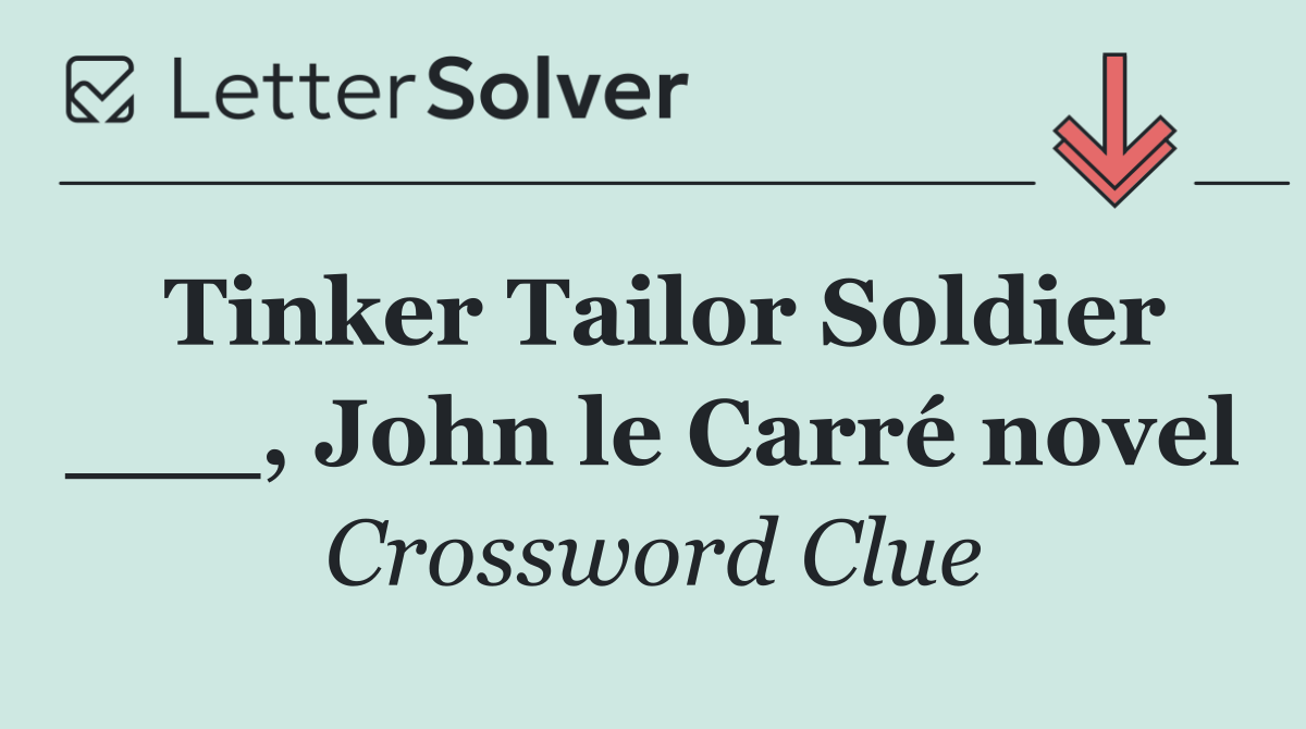 We specialize in solving many of your favorite puzzles, including the New York Times, USA Today, LA Times, Daily Themed Crosswords, and more. The "Tinker Tailor Soldier ___, John le Carré novel" clue from the Puzzler Backwords puzzle, June 05 edition, is one such example.