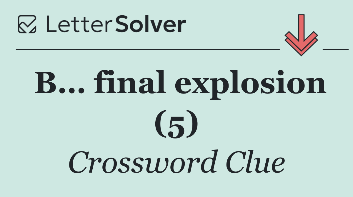 We specialize in solving many of your favorite puzzles, including the New York Times, USA Today, LA Times, Daily Themed Crosswords, and more. The "B… final explosion (5)" clue from the Puzzler Cryptic puzzle, April 30 edition, is one such example.