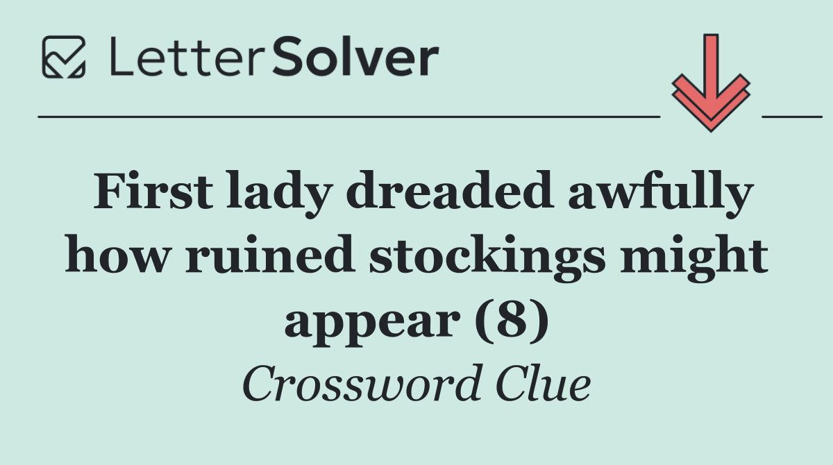 We specialize in solving many of your favorite puzzles, including the New York Times, USA Today, LA Times, Daily Themed Crosswords, and more. The "First lady dreaded awfully how ruined stockings might appear (8)" clue from the Puzzler Cryptic puzzle, January 18 edition, is one such example.