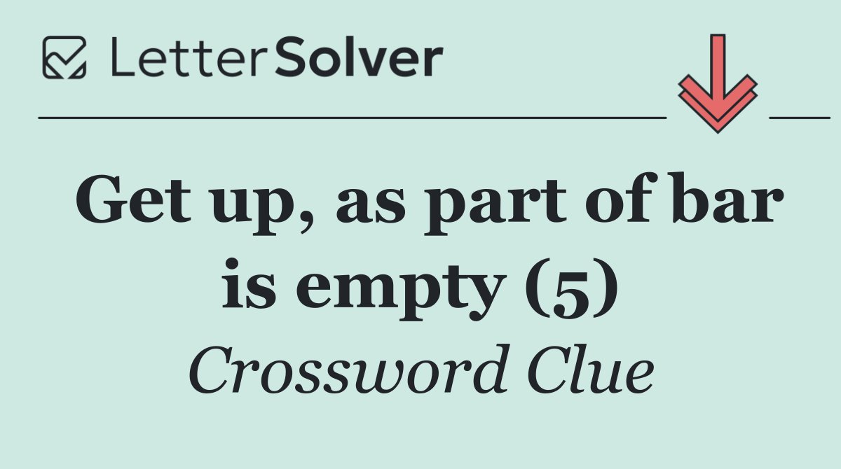 We specialize in solving many of your favorite puzzles, including the New York Times, USA Today, LA Times, Daily Themed Crosswords, and more. The "Get up, as part of bar is empty (5)" clue from the Puzzler Cryptic puzzle, January 10 edition, is one such example.