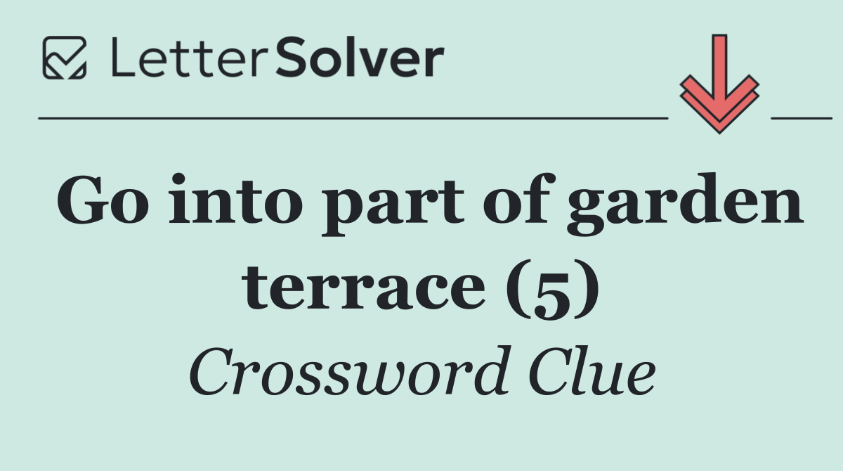 We specialize in solving many of your favorite puzzles, including the New York Times, USA Today, LA Times, Daily Themed Crosswords, and more. The "Go into part of garden terrace (5)" clue from the Puzzler Cryptic puzzle, July 12 edition, is one such example.