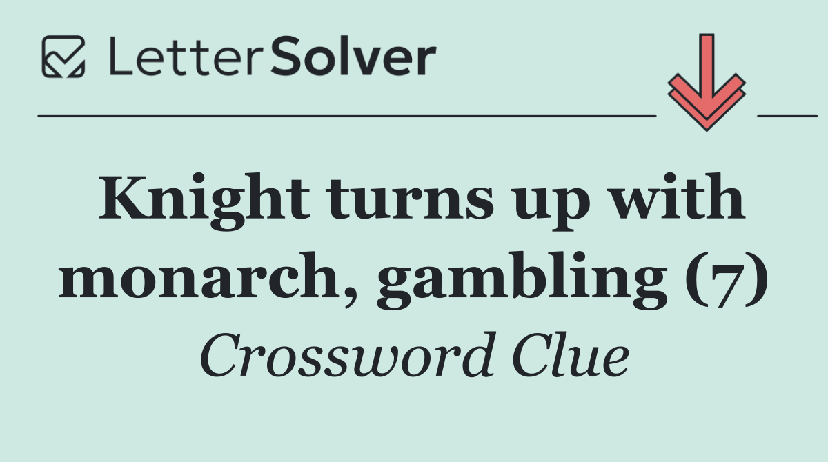 We specialize in solving many of your favorite puzzles, including the New York Times, USA Today, LA Times, Daily Themed Crosswords, and more. The "Knight turns up with monarch, gambling (7)" clue from the Puzzler Cryptic puzzle, June 14 edition, is one such example.