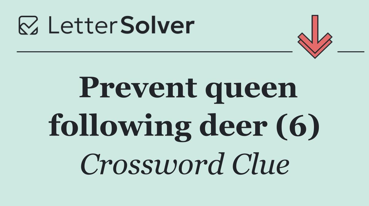 We specialize in solving many of your favorite puzzles, including the New York Times, USA Today, LA Times, Daily Themed Crosswords, and more. The "Prevent queen following deer (6)" clue from the Puzzler Cryptic puzzle, May 15 edition, is one such example.