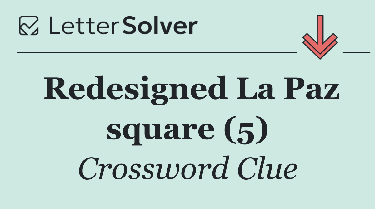 We specialize in solving many of your favorite puzzles, including the New York Times, USA Today, LA Times, Daily Themed Crosswords, and more. The "Redesigned La Paz square (5)" clue from the Puzzler Cryptic puzzle, January 29 edition, is one such example.