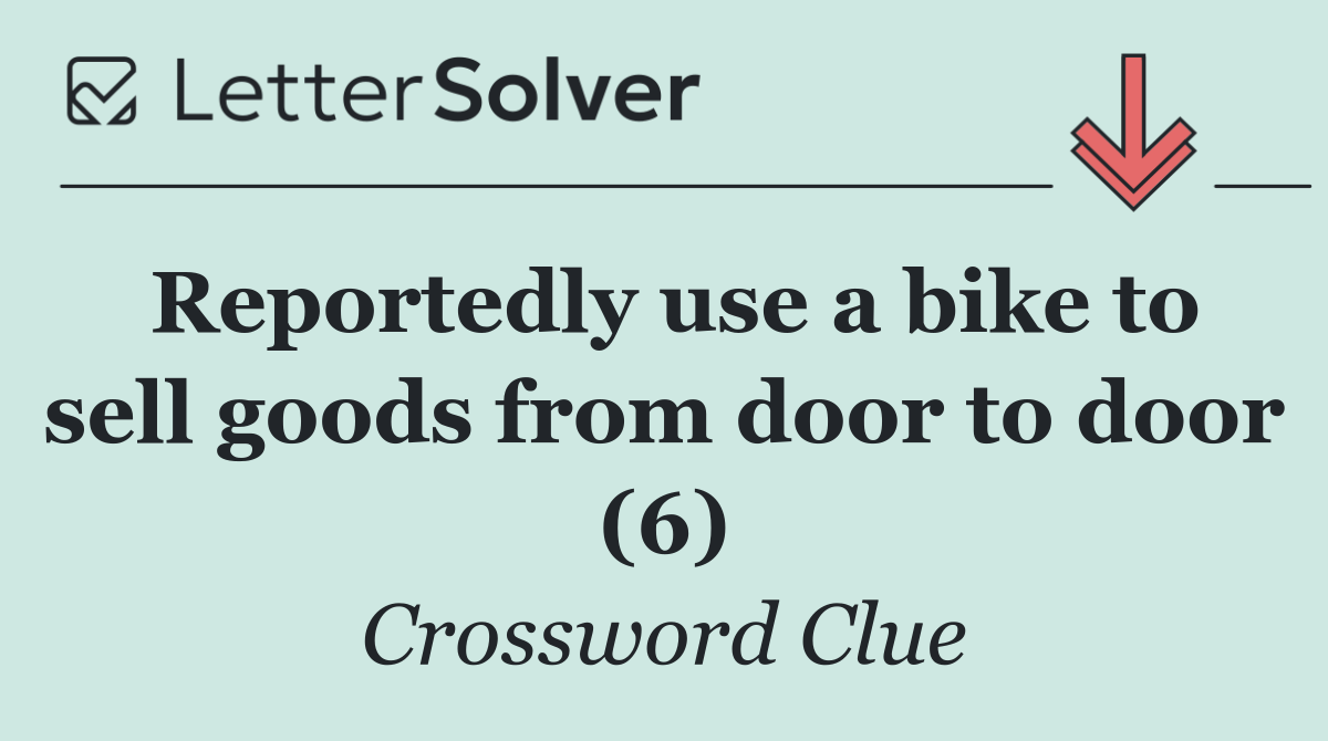 Uncover the answer to the Puzzler Cryptic puzzle's Reportedly use a bike to sell goods from door to door (6) clue right here! We cracked the code and found the 6-letter word, the exact solution to help you solve this clue and finish your daily challenge. Ready to reveal it?