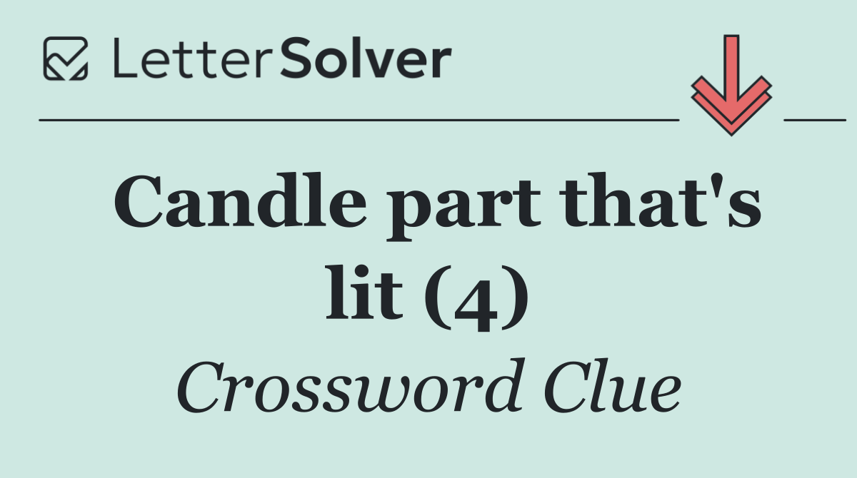 We specialize in solving many of your favorite puzzles, including the New York Times, USA Today, LA Times, Daily Themed Crosswords, and more. The "Candle part that's lit (4)" clue from the Puzzler puzzle, May 30 edition, is one such example.