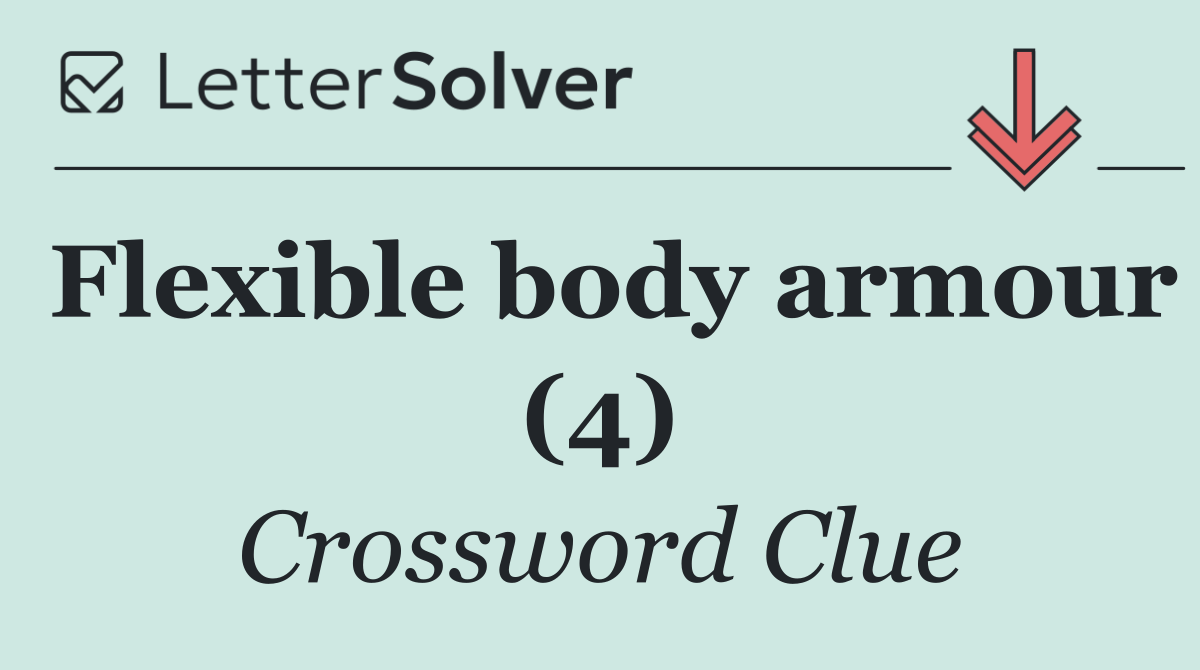 We specialize in solving many of your favorite puzzles, including the New York Times, USA Today, LA Times, Daily Themed Crosswords, and more. The "Flexible body armour (4)" clue from the Puzzler puzzle, June 14 edition, is one such example.