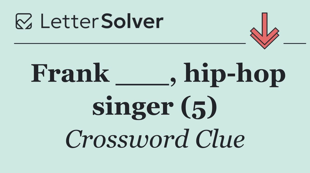 Uncover the answer to the Puzzler puzzle's Frank ___, hip hop singer (5) clue right here! We cracked the code and found the 5-letter word, the exact solution to help you solve this clue and finish your daily challenge. Ready to reveal it?