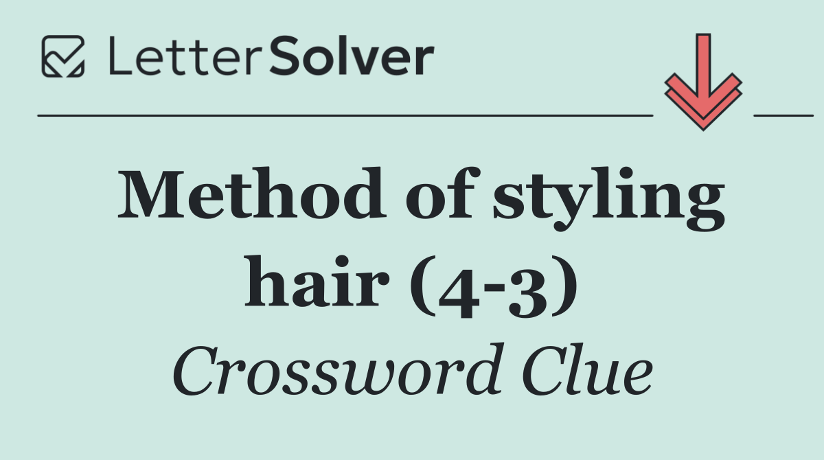 We specialize in solving many of your favorite puzzles, including the New York Times, USA Today, LA Times, Daily Themed Crosswords, and more. The "Method of styling hair (4 3)" clue from the Puzzler puzzle, May 08 edition, is one such example.