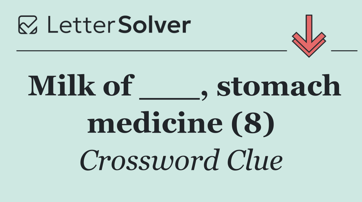 We specialize in solving many of your favorite puzzles, including the New York Times, USA Today, LA Times, Daily Themed Crosswords, and more. The "Milk of ___, stomach medicine (8)" clue from the Puzzler puzzle, May 24 edition, is one such example.