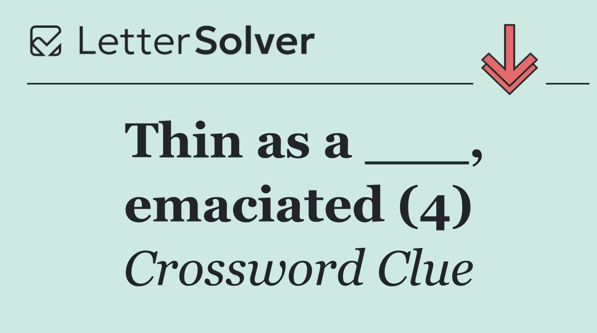 We specialize in solving many of your favorite puzzles, including the New York Times, USA Today, LA Times, Daily Themed Crosswords, and more. The "Thin as a ___, emaciated (4)" clue from the Puzzler puzzle, May 11 edition, is one such example.
