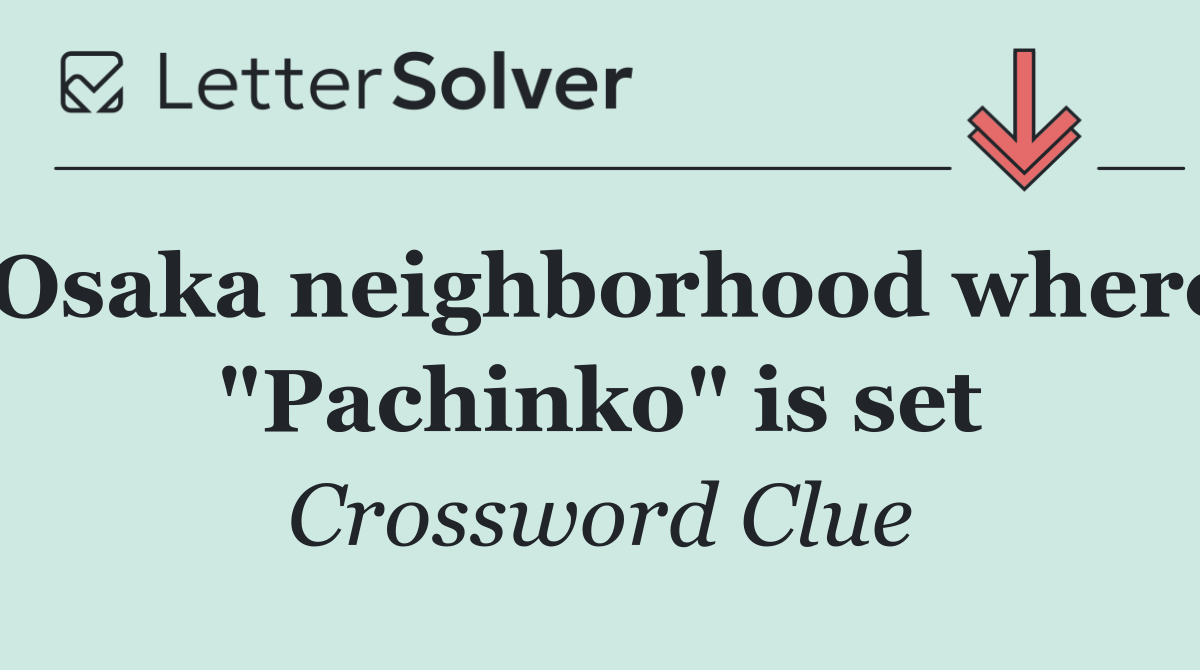 We specialize in solving many of your favorite puzzles, including the New York Times, USA Today, LA Times, Daily Themed Crosswords, and more. The "Osaka neighborhood where "Pachinko" is set" clue from the TV puzzle, November 10 edition, is one such example.