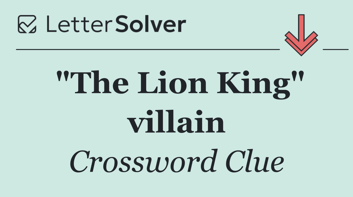 We specialize in solving many of your favorite puzzles, including the New York Times, USA Today, LA Times, Daily Themed Crosswords, and more. The ""The Lion King" villain" clue from the TV puzzle, July 27 edition, is one such example.