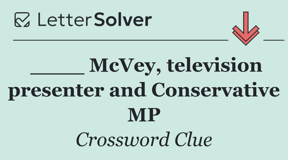 We specialize in solving many of your favorite puzzles, including the New York Times, USA Today, LA Times, Daily Themed Crosswords, and more. The "____ McVey, television presenter and Conservative MP" clue from the Telegraph Cross Atlantic puzzle, May 23 edition, is one such example.