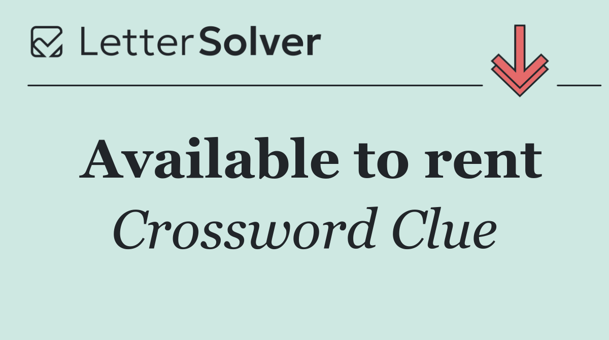 We specialize in solving many of your favorite puzzles, including the New York Times, USA Today, LA Times, Daily Themed Crosswords, and more. The "Available to rent" clue from the Telegraph Cross Atlantic puzzle, June 04 edition, is one such example.