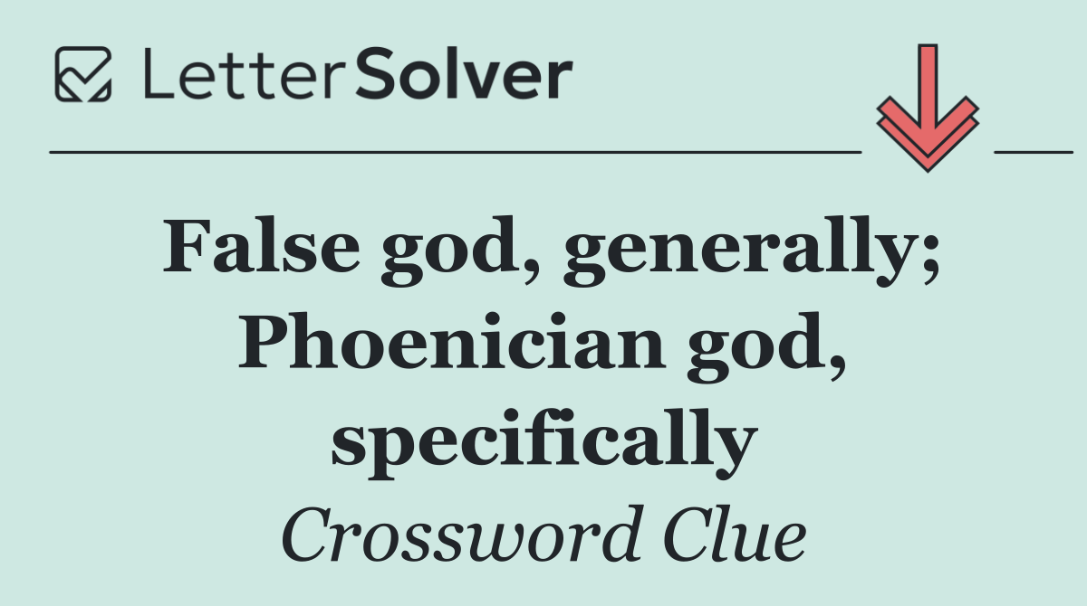We specialize in solving many of your favorite puzzles, including the New York Times, USA Today, LA Times, Daily Themed Crosswords, and more. The "False god, generally; Phoenician god, specifically" clue from the Telegraph Cross Atlantic puzzle, March 24 edition, is one such example.