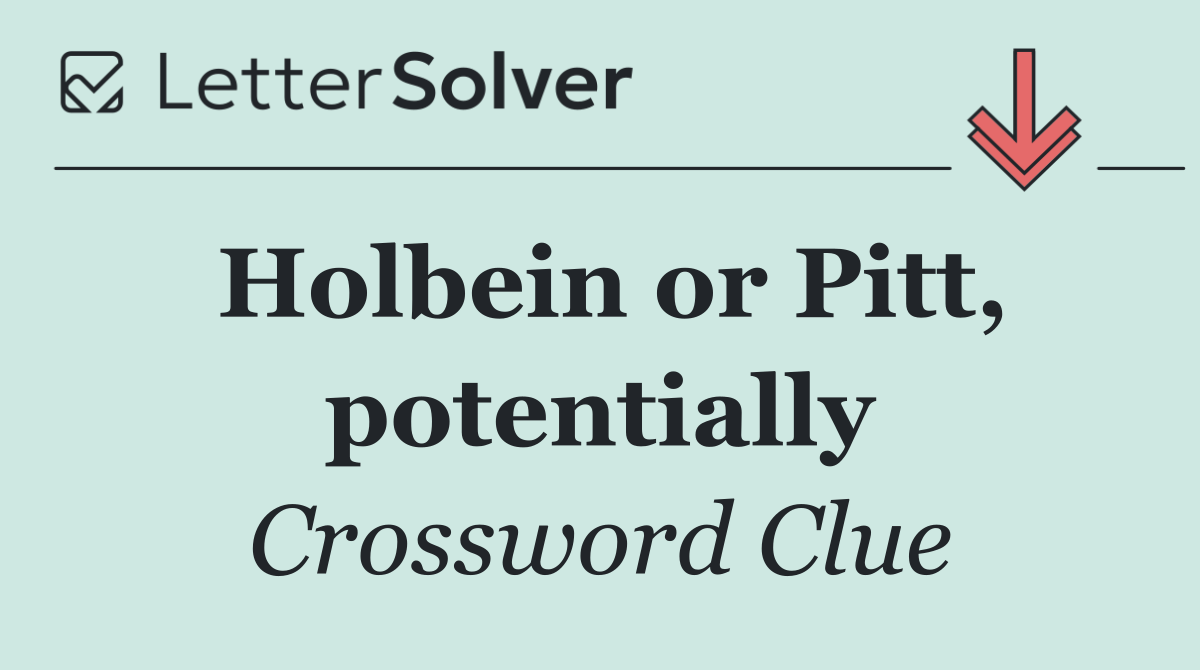 We specialize in solving many of your favorite puzzles, including the New York Times, USA Today, LA Times, Daily Themed Crosswords, and more. The "Holbein or Pitt, potentially" clue from the Telegraph Cross Atlantic puzzle, May 01 edition, is one such example.