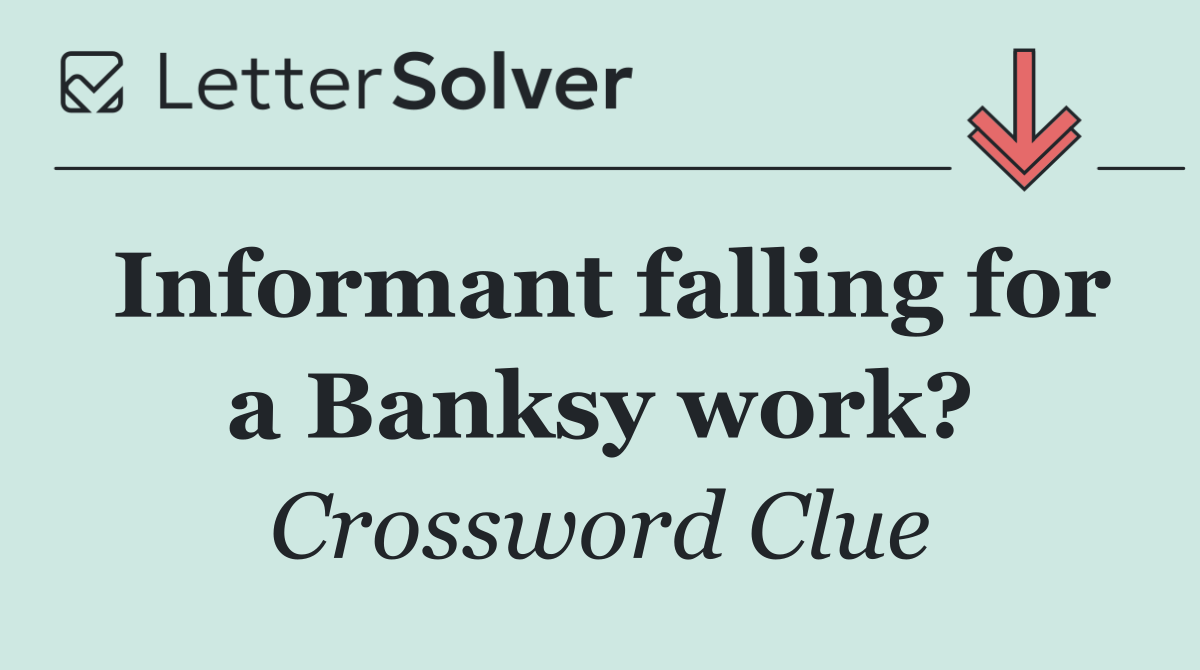 We specialize in solving many of your favorite puzzles, including the New York Times, USA Today, LA Times, Daily Themed Crosswords, and more. The "Informant falling for a Banksy work?" clue from the Telegraph Cross Atlantic puzzle, March 20 edition, is one such example.