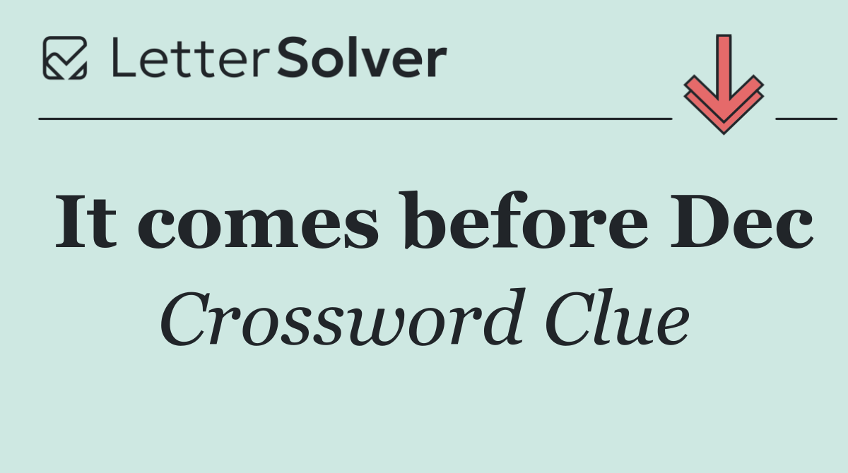 We specialize in solving many of your favorite puzzles, including the New York Times, USA Today, LA Times, Daily Themed Crosswords, and more. The "It comes before Dec" clue from the Telegraph Cross Atlantic puzzle, February 26 edition, is one such example.