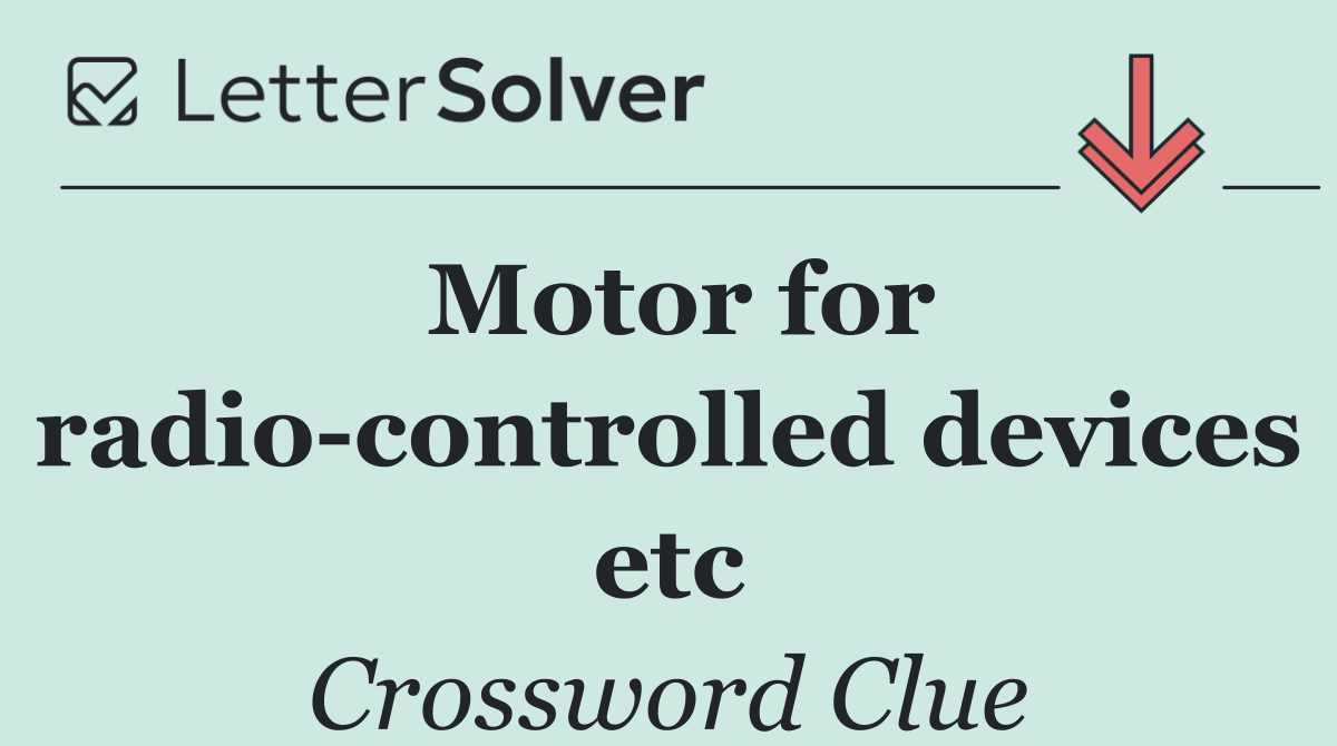 We specialize in solving many of your favorite puzzles, including the New York Times, USA Today, LA Times, Daily Themed Crosswords, and more. The "Motor for radio controlled devices etc" clue from the Telegraph Cross Atlantic puzzle, May 13 edition, is one such example.