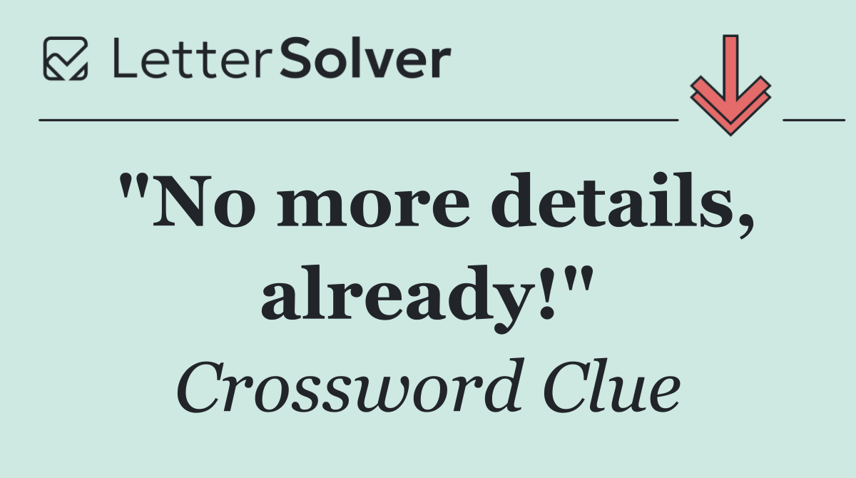 We specialize in solving many of your favorite puzzles, including the New York Times, USA Today, LA Times, Daily Themed Crosswords, and more. The ""No more details, already!"" clue from the Telegraph Cross Atlantic puzzle, March 15 edition, is one such example.