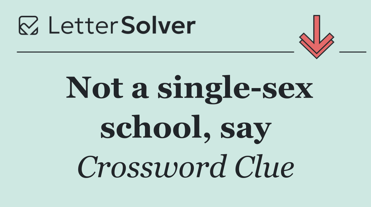 We specialize in solving many of your favorite puzzles, including the New York Times, USA Today, LA Times, Daily Themed Crosswords, and more. The "Not a single sex school, say" clue from the Telegraph Cross Atlantic puzzle, June 04 edition, is one such example.
