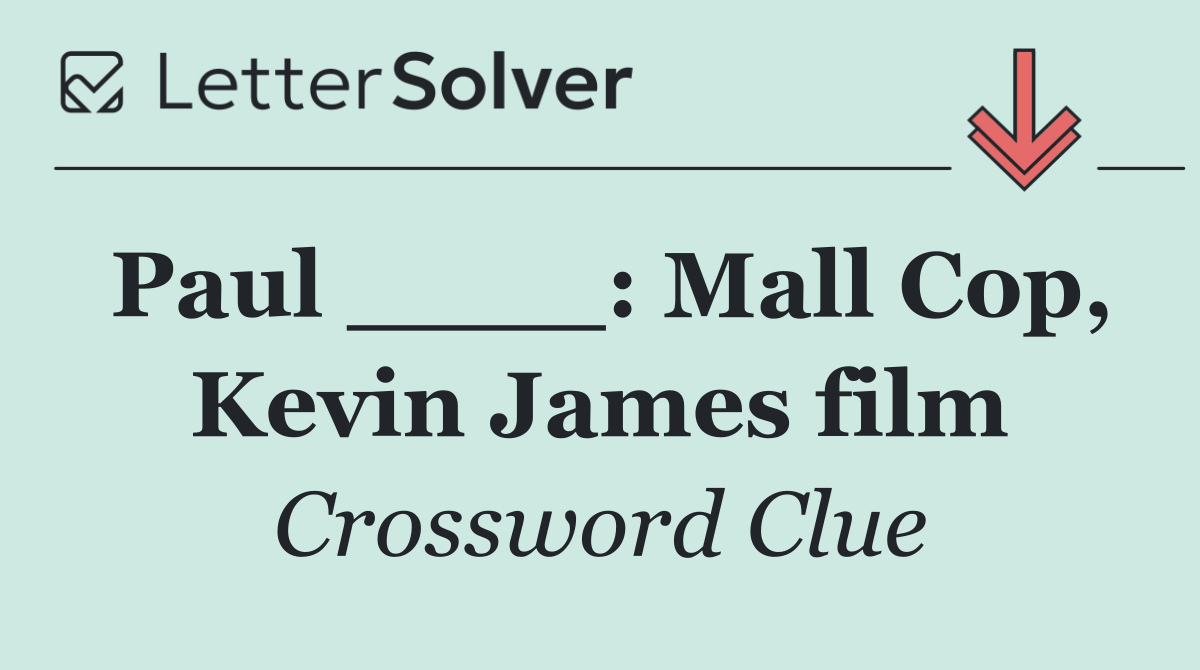 Uncover the answer to the The Telegraph Cross Atlantic puzzle's Paul ____: Mall Cop, Kevin James film clue right here! We cracked the code and found the 5-letter word, the exact solution to help you solve this clue and finish your daily challenge. Ready to reveal it?