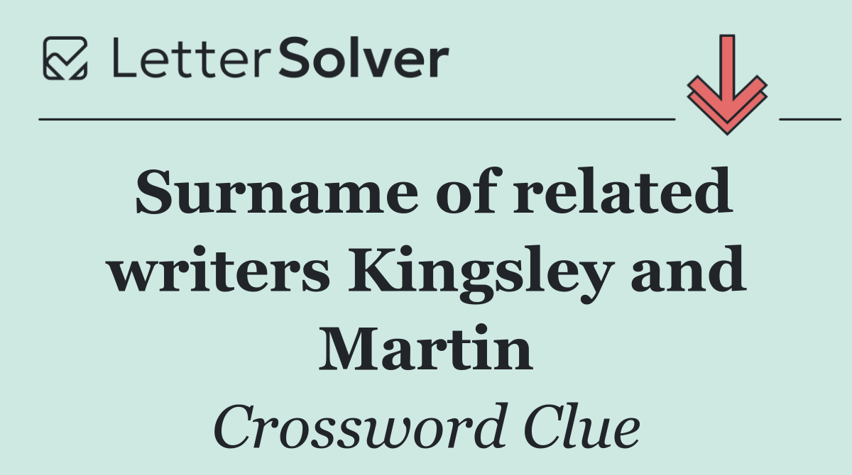 We specialize in solving many of your favorite puzzles, including the New York Times, USA Today, LA Times, Daily Themed Crosswords, and more. The "Surname of related writers Kingsley and Martin" clue from the Telegraph Cross Atlantic puzzle, March 08 edition, is one such example.