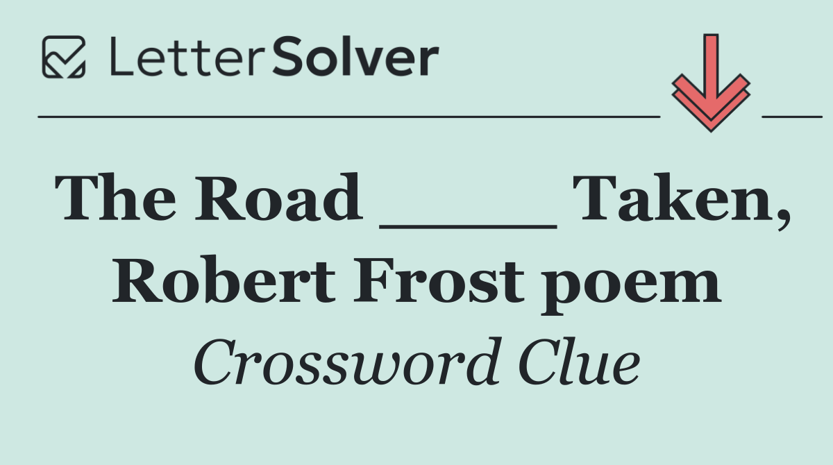 We specialize in solving many of your favorite puzzles, including the New York Times, USA Today, LA Times, Daily Themed Crosswords, and more. The "The Road ____ Taken, Robert Frost poem" clue from the Telegraph Cross Atlantic puzzle, June 27 edition, is one such example.