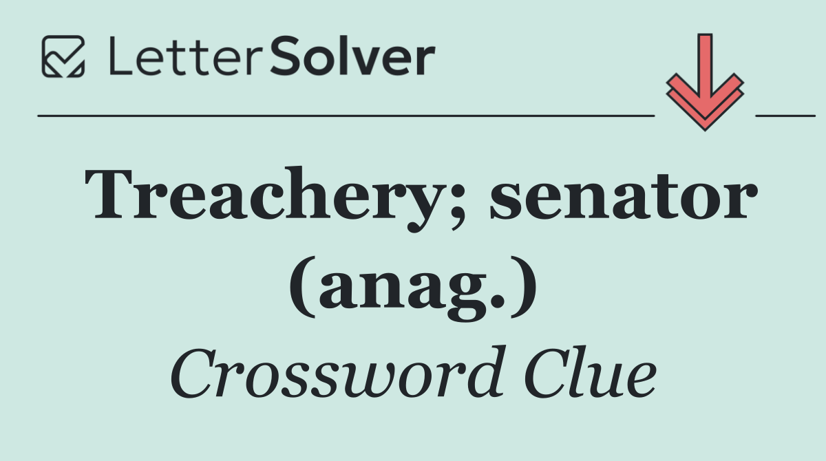 We specialize in solving many of your favorite puzzles, including the New York Times, USA Today, LA Times, Daily Themed Crosswords, and more. The "Treachery; senator (anag.)" clue from the Telegraph Cross Atlantic puzzle, April 28 edition, is one such example.