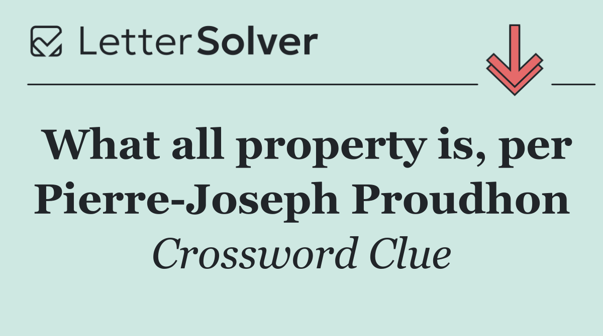 We specialize in solving many of your favorite puzzles, including the New York Times, USA Today, LA Times, Daily Themed Crosswords, and more. The "What all property is, per Pierre Joseph Proudhon" clue from the Telegraph Cross Atlantic puzzle, March 11 edition, is one such example.