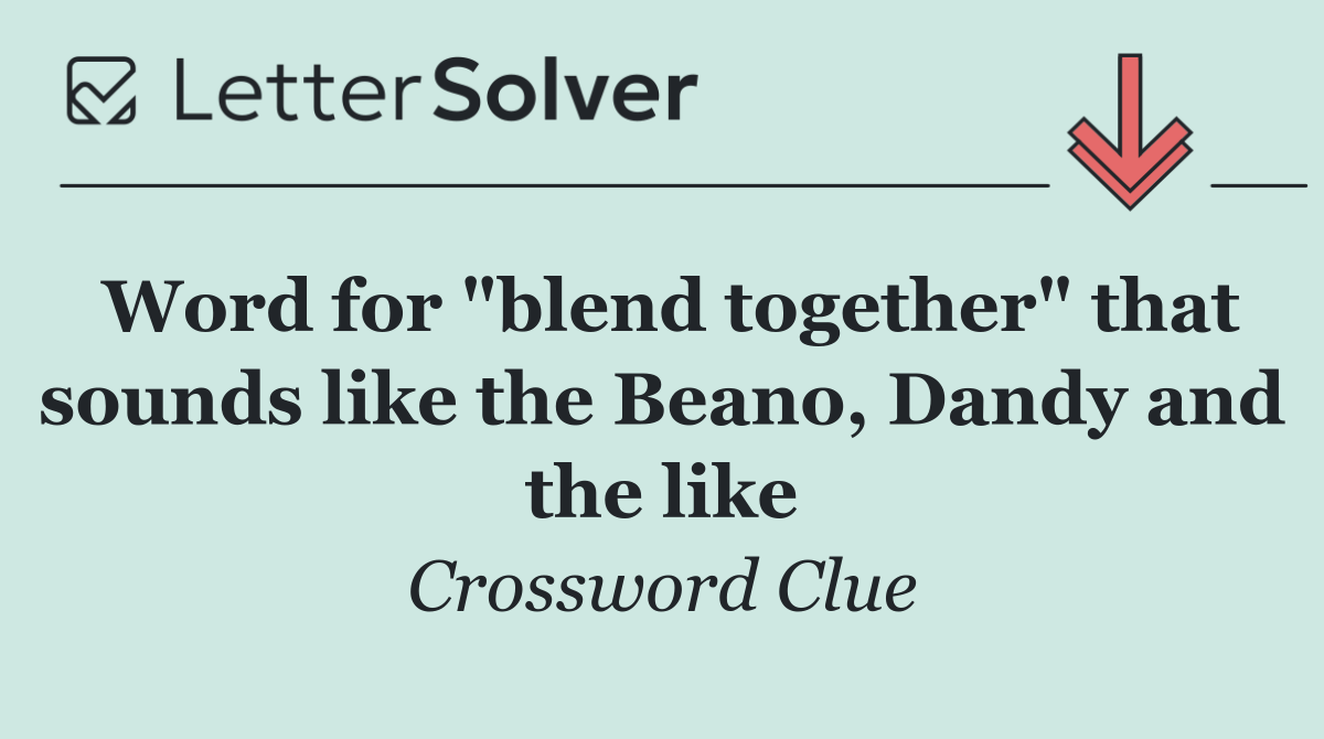 We specialize in solving many of your favorite puzzles, including the New York Times, USA Today, LA Times, Daily Themed Crosswords, and more. The "Word for "blend together" that sounds like the Beano, Dandy and the like" clue from the Telegraph Cross Atlantic puzzle, May 15 edition, is one such example.