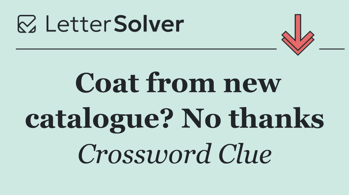 Uncover the answer to the The Telegraph Cryptic puzzle's Coat from new catalogue? No thanks clue right here! We cracked the code and found the 7-letter word, the exact solution to help you solve this clue and finish your daily challenge. Ready to reveal it?
