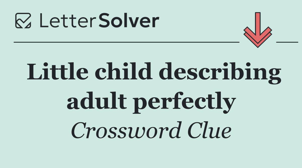 We specialize in solving many of your favorite puzzles, including the New York Times, USA Today, LA Times, Daily Themed Crosswords, and more. The "Little child describing adult perfectly" clue from the Telegraph Cryptic puzzle, December 31 edition, is one such example.