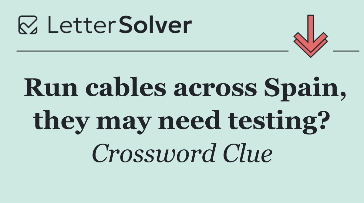 We specialize in solving many of your favorite puzzles, including the New York Times, USA Today, LA Times, Daily Themed Crosswords, and more. The "Run cables across Spain, they may need testing?" clue from the Telegraph Cryptic puzzle, February 14 edition, is one such example.