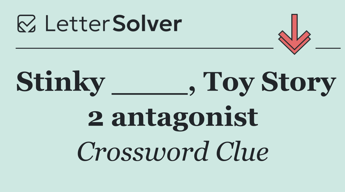We specialize in solving many of your favorite puzzles, including the New York Times, USA Today, LA Times, Daily Themed Crosswords, and more. The "Stinky ____, Toy Story 2 antagonist" clue from the Telegraph Mini puzzle, January 22 edition, is one such example.