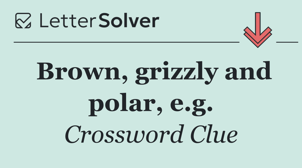 We specialize in solving many of your favorite puzzles, including the New York Times, USA Today, LA Times, Daily Themed Crosswords, and more. The "Brown, grizzly and polar, e.g." clue from the Telegraph Plusword puzzle, February 14 edition, is one such example.