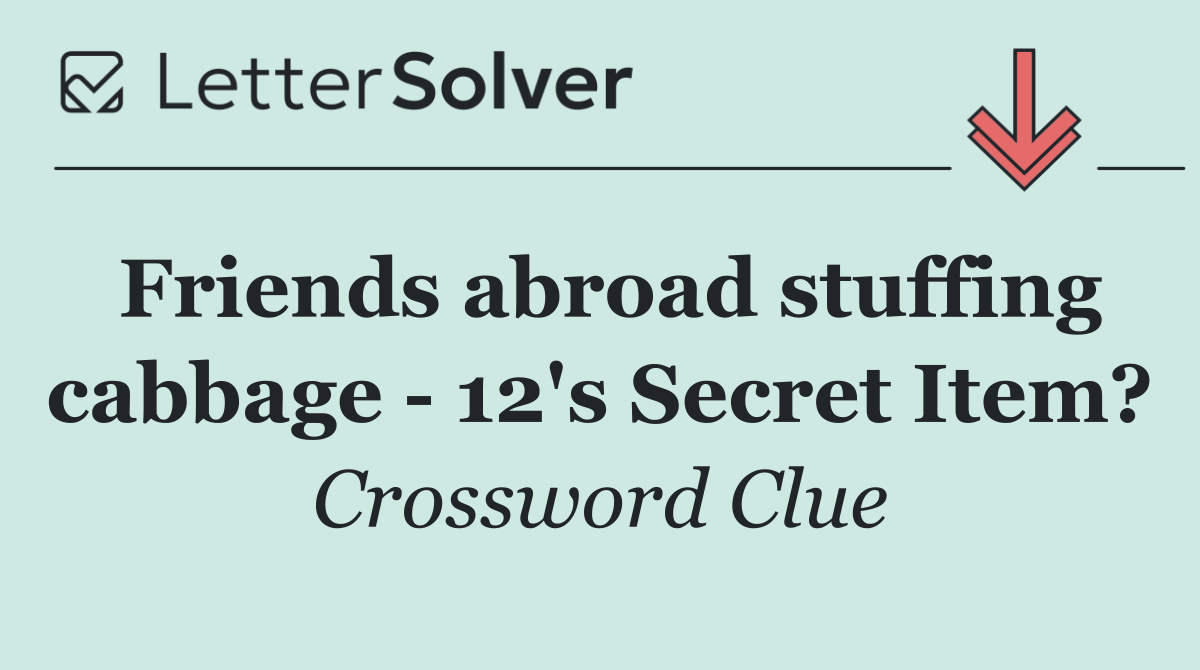 We specialize in solving many of your favorite puzzles, including the New York Times, USA Today, LA Times, Daily Themed Crosswords, and more. The "Friends abroad stuffing cabbage 12's Secret Item?" clue from the Telegraph Toughie puzzle, June 24 edition, is one such example.