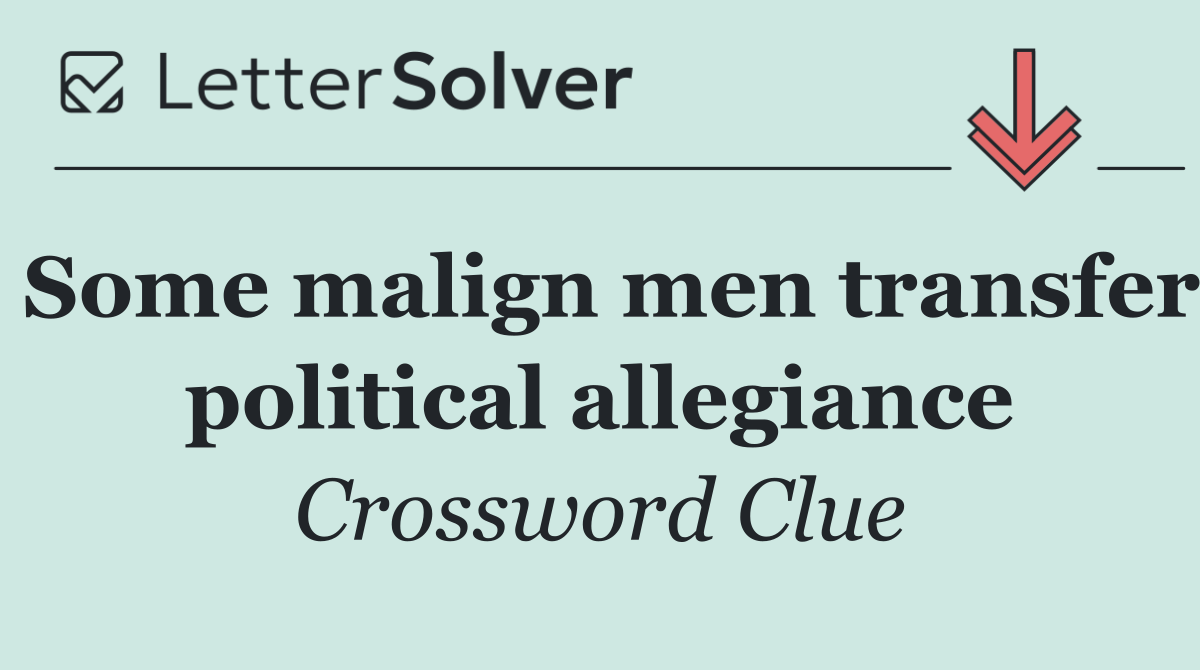 We specialize in solving many of your favorite puzzles, including the New York Times, USA Today, LA Times, Daily Themed Crosswords, and more. The "Some malign men transfer political allegiance" clue from the Telegraph Toughie puzzle, April 22 edition, is one such example.