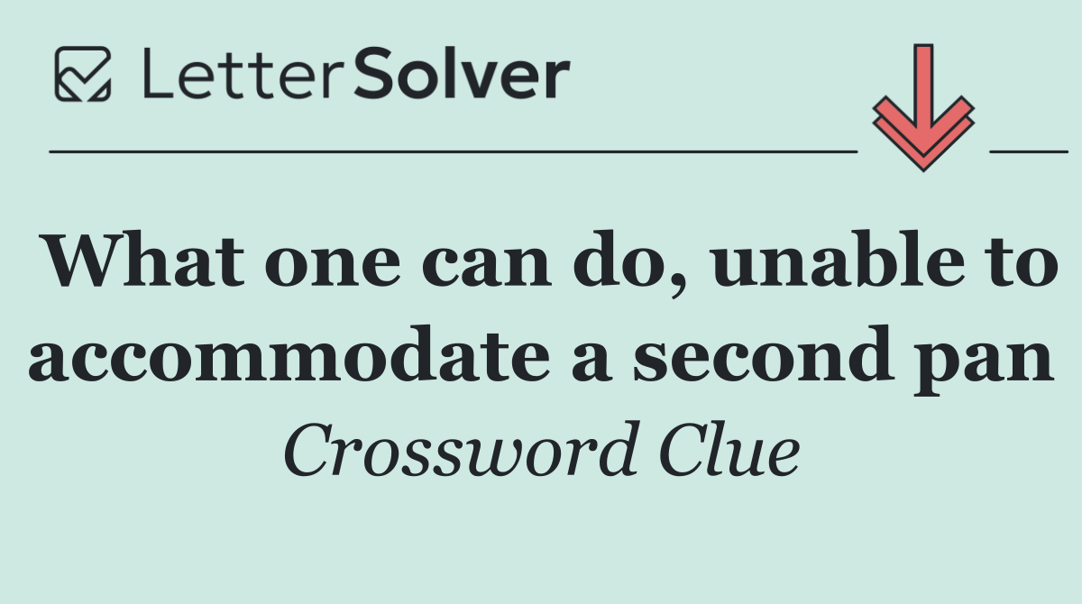We specialize in solving many of your favorite puzzles, including the New York Times, USA Today, LA Times, Daily Themed Crosswords, and more. The "What one can do, unable to accommodate a second pan" clue from the Telegraph Toughie puzzle, April 17 edition, is one such example.