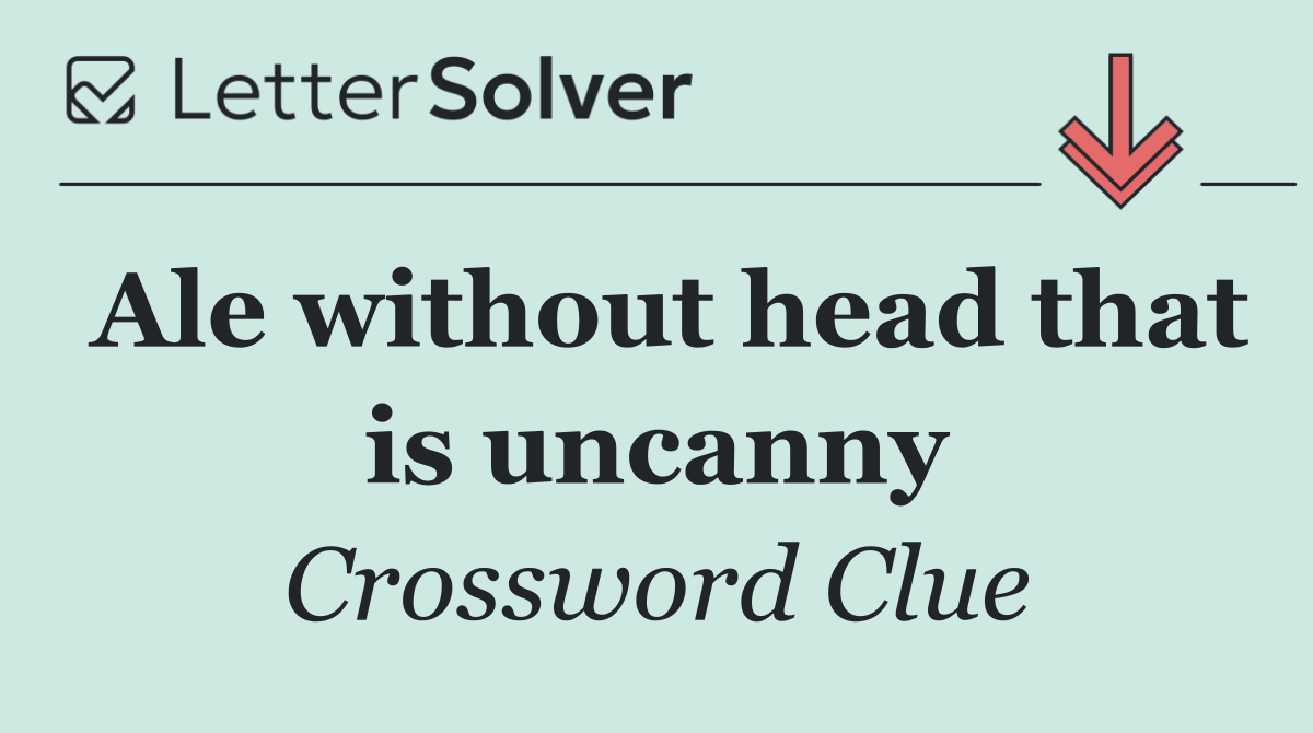 We specialize in solving many of your favorite puzzles, including the New York Times, USA Today, LA Times, Daily Themed Crosswords, and more. The "Ale without head that is uncanny" clue from the Sun Two Speed puzzle, May 12 edition, is one such example.