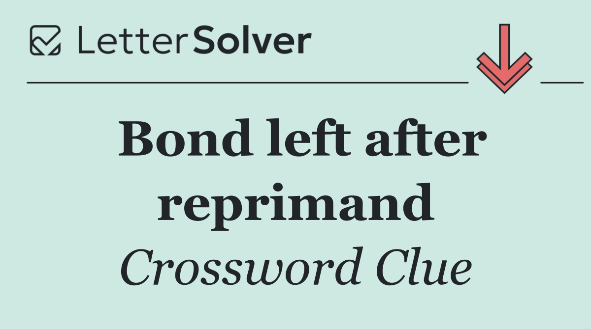 We specialize in solving many of your favorite puzzles, including the New York Times, USA Today, LA Times, Daily Themed Crosswords, and more. The "Bond left after reprimand" clue from the Sun Two Speed puzzle, May 26 edition, is one such example.