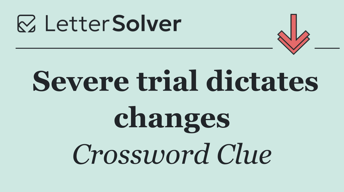 We specialize in solving many of your favorite puzzles, including the New York Times, USA Today, LA Times, Daily Themed Crosswords, and more. The "Severe trial dictates changes" clue from the Sun Two Speed puzzle, June 02 edition, is one such example.