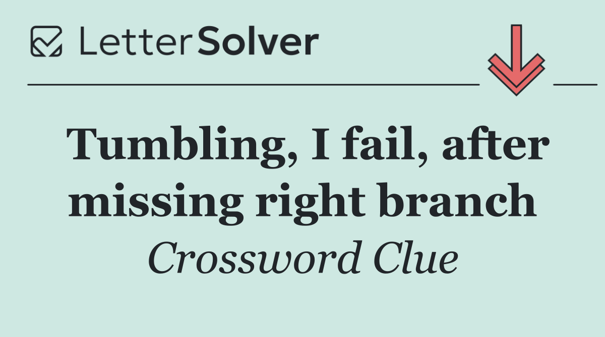 We specialize in solving many of your favorite puzzles, including the New York Times, USA Today, LA Times, Daily Themed Crosswords, and more. The "Tumbling, I fail, after missing right branch" clue from the Sun Two Speed puzzle, May 07 edition, is one such example.