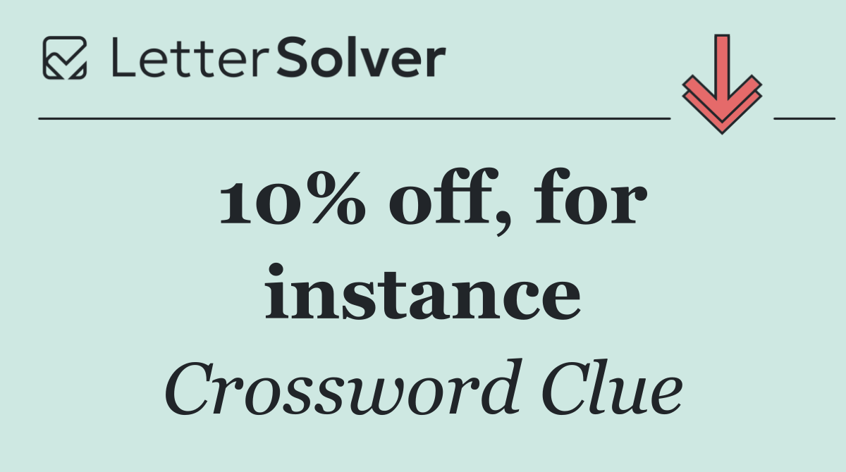 We specialize in solving many of your favorite puzzles, including the New York Times, USA Today, LA Times, Daily Themed Crosswords, and more. The "10% off, for instance" clue from the Universal puzzle, January 10 edition, is one such example.